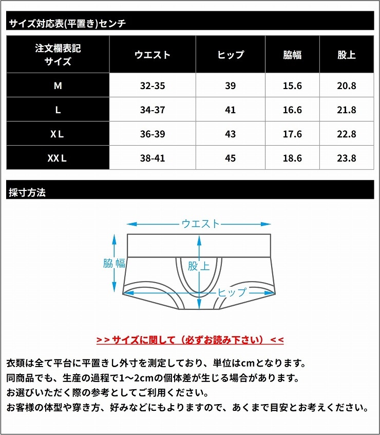 ウエストサイズ(平置きの目安) M 約32-35cm L 約34-37cm XL 約36-39cm XXL 約38-41cm 【ウエストサイズに関して】 同サイズを並べると若干差がございますが、伸縮性に優れた生地ですので着用するとカラダにフィットいたします。 ※洗濯の際、他のものと分けてご面倒でも手洗いをおすすめします。洗濯後は形を整えてすぐに干してください。乾燥機の使用はお控えください。 ※生地にプリントしているため、伸縮時や縫製箇所等、色が薄く見える場合があります。 ※転写プリントのため、裏地は白色となります。 ※フロントポーチは、二重です。(内側はメッシュ生地) ※手作業で縫製している為、ハトメや縫製の位置に若干のばらつきがある場合がございます。ご了承ください。 [お取り扱い上のご注意] この製品は装飾性を高めるため繊細な素材を用い一部に金属を使用しています。 丁寧にやさしくお取り扱いください。 洗濯は金属部分に気をつけ40℃上限のぬるま湯洗濯液を使い単独手洗いをしてください。 ※ やむを得ず洗濯機を使用する場合はクッション性のある厚手の洗濯ネットを必ずご利用ください。 ※ 手洗いコース・ソフトコースなどを選び短時間で単独洗濯してください。 ※ 洗濯槽、製品の金属部分や他のものなど、思わぬキズや破損につながる場合がありますので十分にご注意ください。 ※ 脱水は洗濯機で行わず必ず乾いたタオルなどでしっかり水気を吸い取ってください。 投げたり乱暴な取り扱いは思わぬケガや破損につながる場合がありますので十分にご注意ください。 金属部分の引っかけやものに当たるなど着脱時や着衣中は十分にご注意ください。 製品を永く大切にご愛用いただくため、以上の点を忘れないように十分注意ししっかり守ってください。